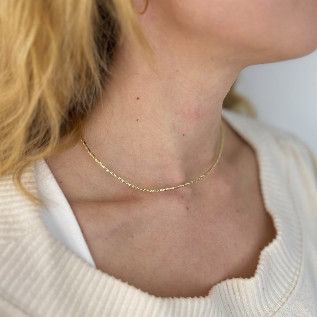 Dzięki długości 40 cm łańcuszek idealnie nadaje się do noszenia na co dzień, jak i na specjalne okazje. Złota powierzchnia nadaje biżuterii ponadczasowy wygląd, który pasuje do każdej stylizacji. Łańcuszek jest dostarczany w eleganckim pudełku prezentowym, dzięki czemu jest idealnym prezentem na każdą okazję. To doskonały wybór dla kobiet, które cenią minimalistyczny design i wysoką jakość wykonania.