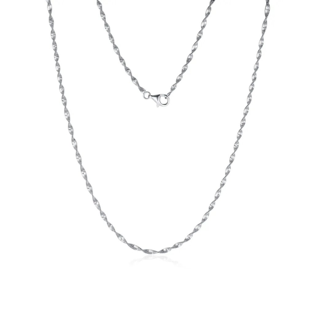 Przedstawiamy Państwu wyjątkowy srebrny łańcuszek TAKIS, który wyróżnia się oryginalnym, skręconym designem. Ta rodowana biżuteria z czystego srebra próby 925/1000 zachwyca od pierwszego wejrzenia spiralną strukturą, która wije się na całej długości łańcuszka.