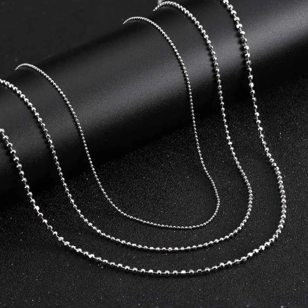 Łańcuszek składa się z szeregu drobnych kuleczek o szerokości 1 mm, które są połączone w jedną harmonijną całość. Długość 55 cm oferuje więcej możliwości stylizacji – możesz go nosić swobodnie opadający, aby uzyskać efektowny wygląd, lub uzupełnić go wyrazistą zawieszką. Dłuższa wersja idealnie nadaje się również do noszenia warstwowego z krótszymi łańcuszkami, tworząc nowoczesny i oryginalny wygląd.