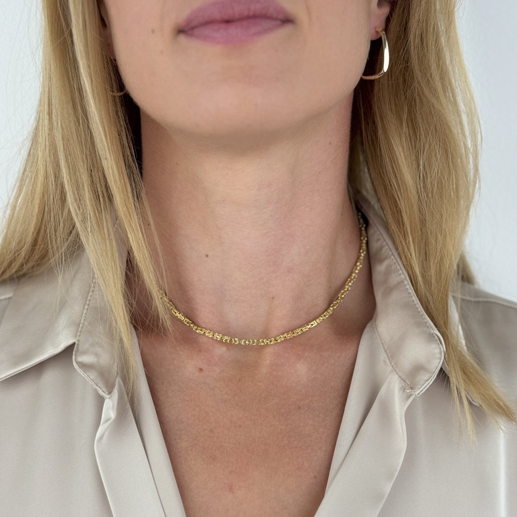 Przedstawiamy Państwu ekskluzywny, pozłacany łańcuszek ADONIS, który łączy w sobie klasyczną elegancję z luksusowym wyglądem. Ta biżuteria wykonana z czystego srebra próby 925/1000 jest uszlachetniona 18-karatowym złotem i stworzona w tradycyjnym stylu bizantyjskim, który charakteryzuje się skomplikowanym przeplataniem poszczególnych ogniw.