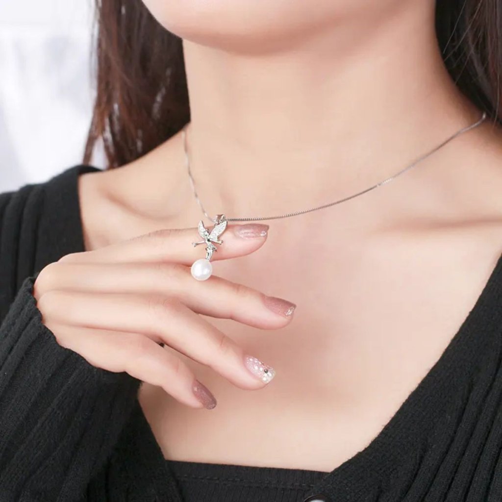 Daj się ponieść pięknu srebrnego łańcuszka z wisiorkiem WRÓŻKA, który opowiada bajkową historię. Wykonany z wysokiej jakości srebra próby 925/1000 z rodowanym wykończeniem zapewniającym długotrwały połysk. Wisiorek o wymiarach 25 × 11 mm przedstawia uroczą wróżkę tańczącą na lśniącej perle słodkowodnej o średnicy 8 mm.