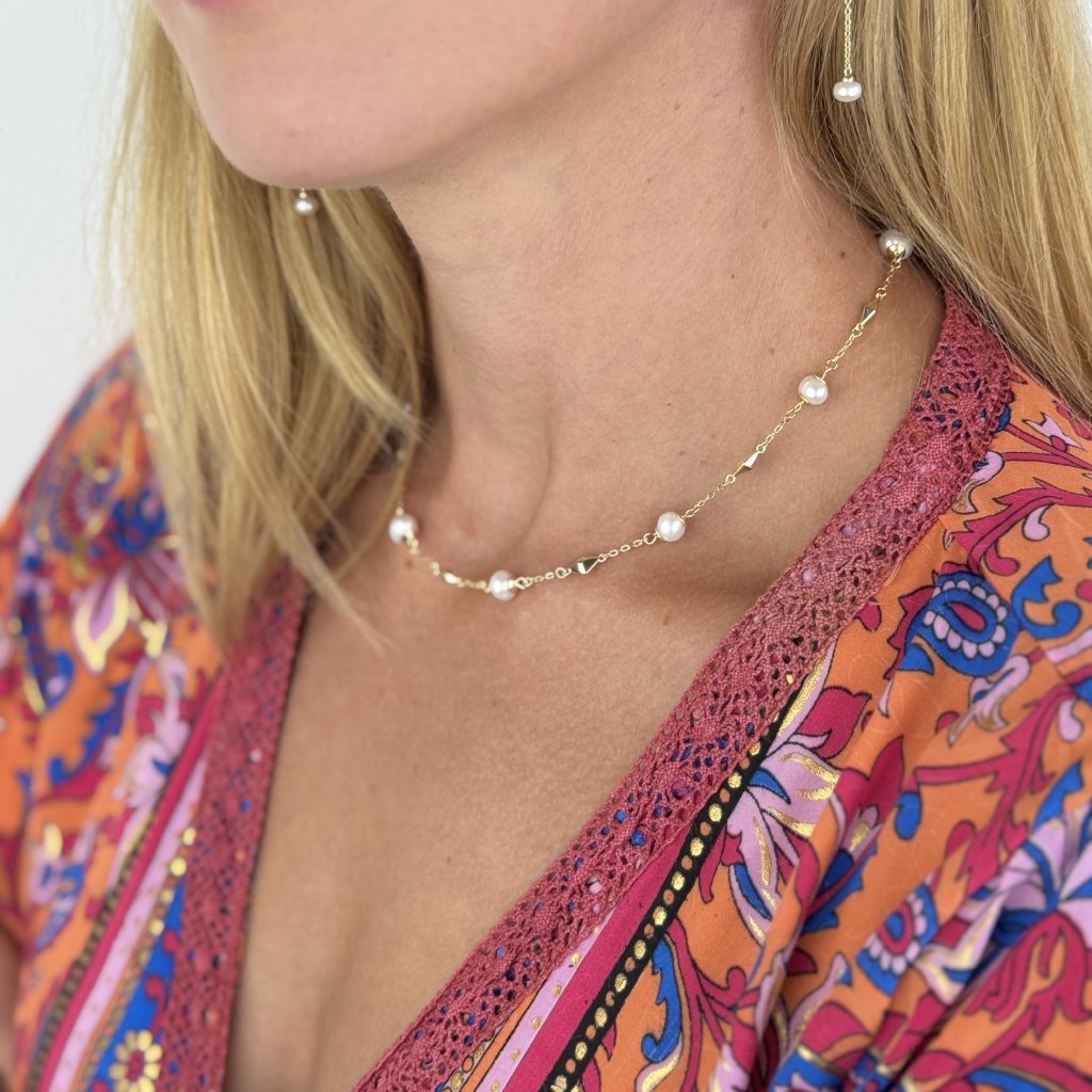 Długość łańcuszka można dopasować dzięki przedłużce od 40 do 45 cm. Perłowy blask pereł w połączeniu ze złotym wykończeniem tworzy ponadczasową biżuterię odpowiednią na każdą okazję. Łańcuszek jest dostarczany w eleganckim pudełku prezentowym, co czyni go idealnym prezentem dla Twoich bliskich.