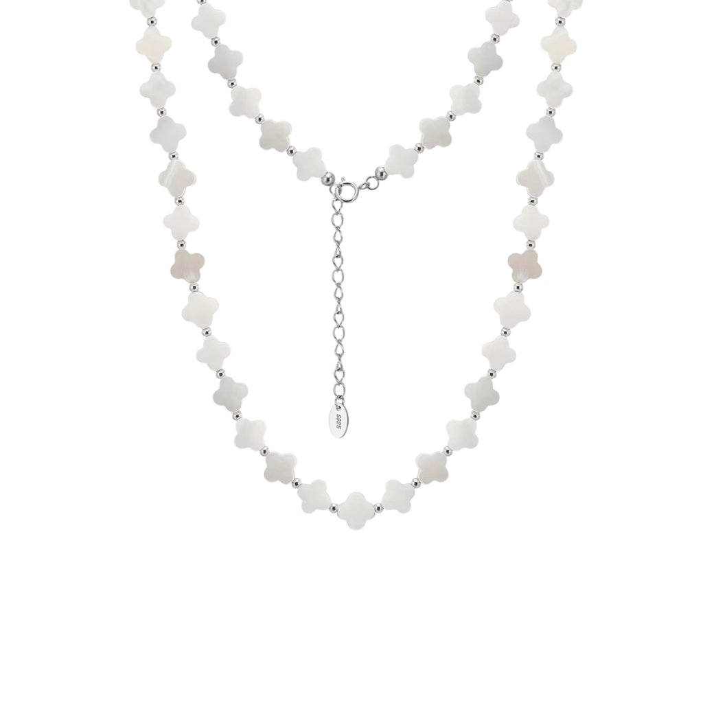Srebrny naszyjnik z zawieszkami LUCKY BIANCA to delikatny i elegancki naszyjnik, który łączy symbolikę szczęścia z ponadczasowym perłowym wyglądem. Wykonany jest z wysokiej jakości srebra o próbie 925/1000, a jego powierzchnia jest rodowana, dzięki czemu zachowuje długotrwały blask i większą odporność na matowienie.