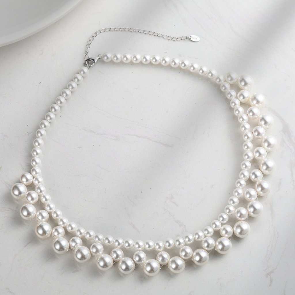 Połączenie bieli i perłowego koloru wygląda luksusowo i ponadczasowo. Dzięki regulowanej długości 40 + 10 cm naszyjnik łatwo dopasowuje się do różnych dekoltów i zapewnia wygodę noszenia. Biżuteria jest przeznaczona dla pań, które szukają wyrazistego i reprezentacyjnego dodatku.