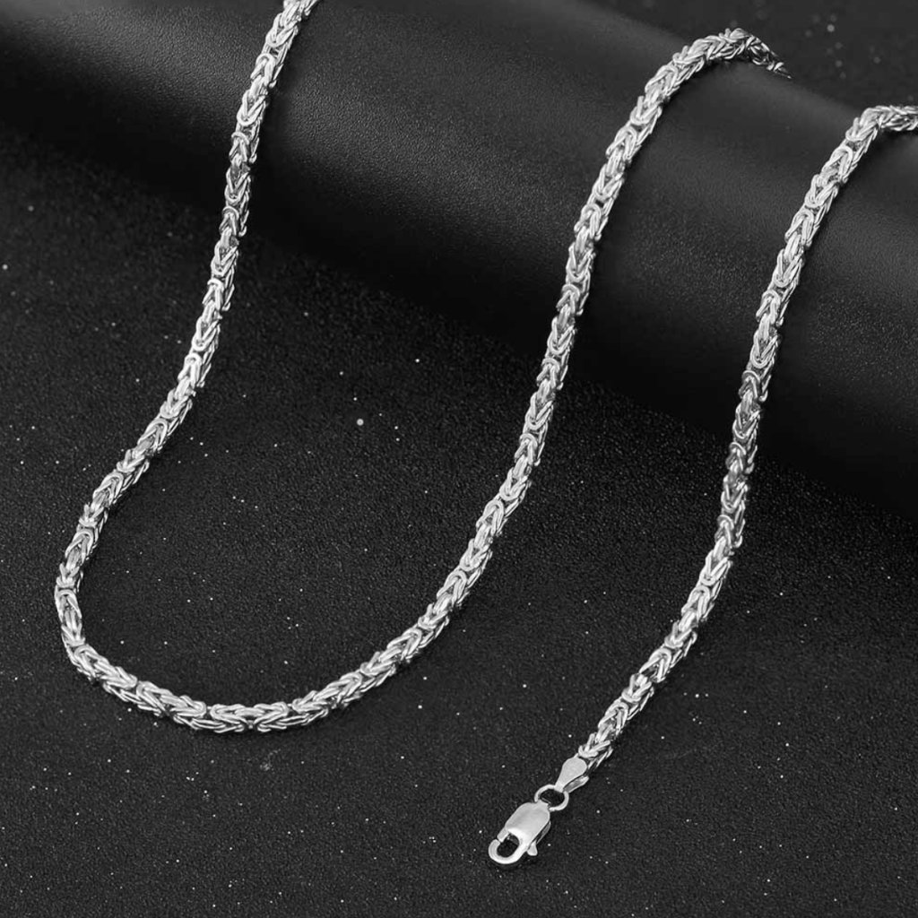 Srebrny łańcuszek ADONIS w stylu bizantyjskim to wspaniała biżuteria wykonana z czystego srebra 925/1000 z rodowanym wykończeniem. Bizantyjski styl splotu to jeden z najstarszych i najpiękniejszych sposobów produkcji łańcuszków, charakteryzujący się misternym wzorem przeplatających się ogniw, tworzących niepowtarzalny i luksusowy wygląd.