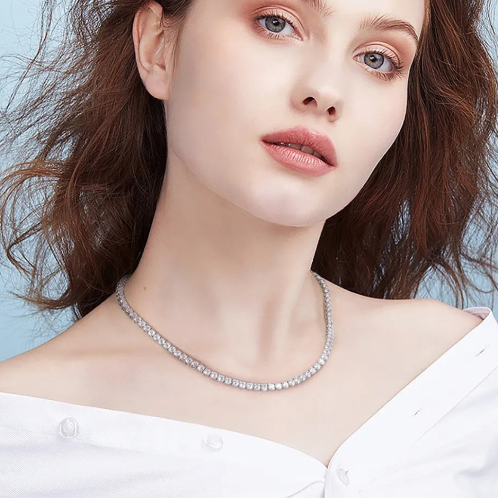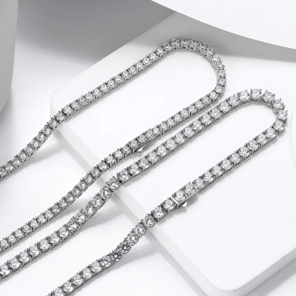 Srebrny łańcuszek tenisowy TALIA to szczyt elegancji i luksusu. Wykonany z wysokiej jakości srebra próby 925/1000, ten 45-centymetrowy naszyjnik posiada nieprzerwany rząd błyszczących przezroczystych cyrkonii sześciennych, które nadają mu olśniewający połysk i urok.