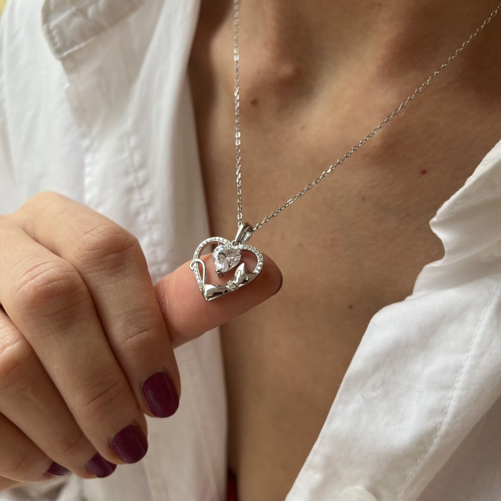 Srebrny naszyjnik z zawieszką w kształcie serca z kotem jest dostarczany w pudełku prezentowym, dzięki czemu jest gotowy do natychmiastowego zadowolenia nowego właściciela.