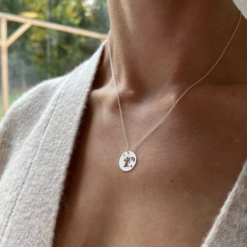 Odkryj magię gwiazd dzięki temu eleganckiemu srebrnemu łańcuszkowi z zawieszką z symbolem zodiaku. Każdy element jest wykonany z najwyższą starannością i z czystego srebra Ag925/1000. Wisiorek ma wymiary 14 x 14 mm i jest okrągły.