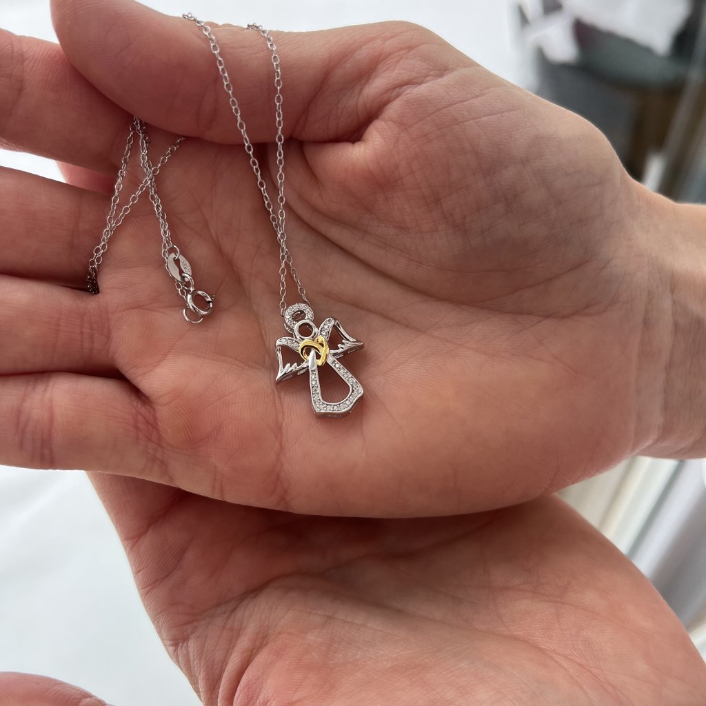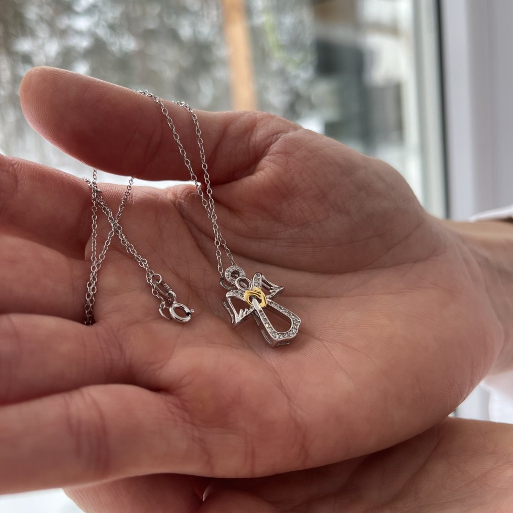 Ta wspaniała biżuteria, wykonana z wysokiej jakości srebra o próbie Ag925/1000, ozdobiona jest centralnym złotym sercem, które jest starannie wysadzane błyszczącymi cyrkoniami sześciennymi. Pokrycie rodem nadaje zawieszce wysoki połysk i chroni ją przed utratą koloru i blasku. Mierzący 17 × 21 mm wisiorek jest wystarczająco charakterystyczny, by przyciągać wzrok, a jednocześnie wystarczająco dyskretny, by nosić go na co dzień.