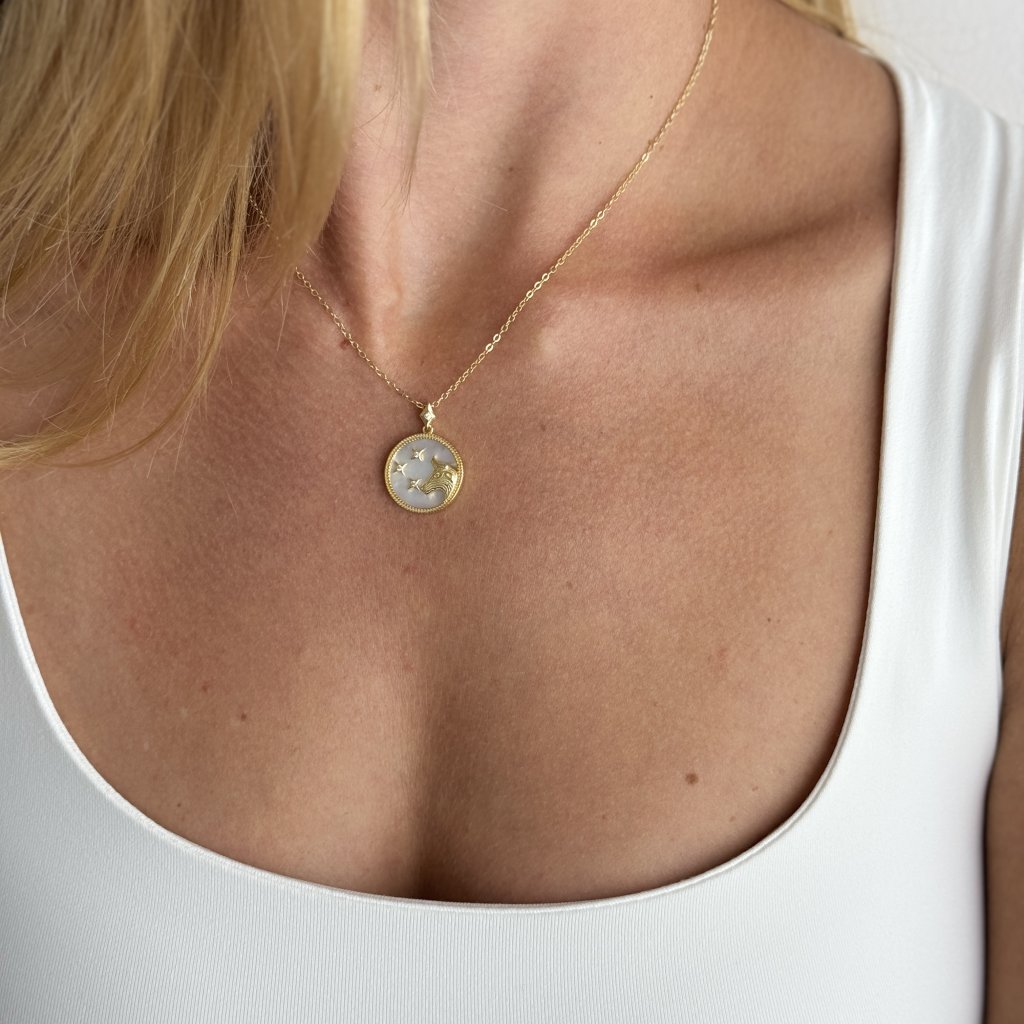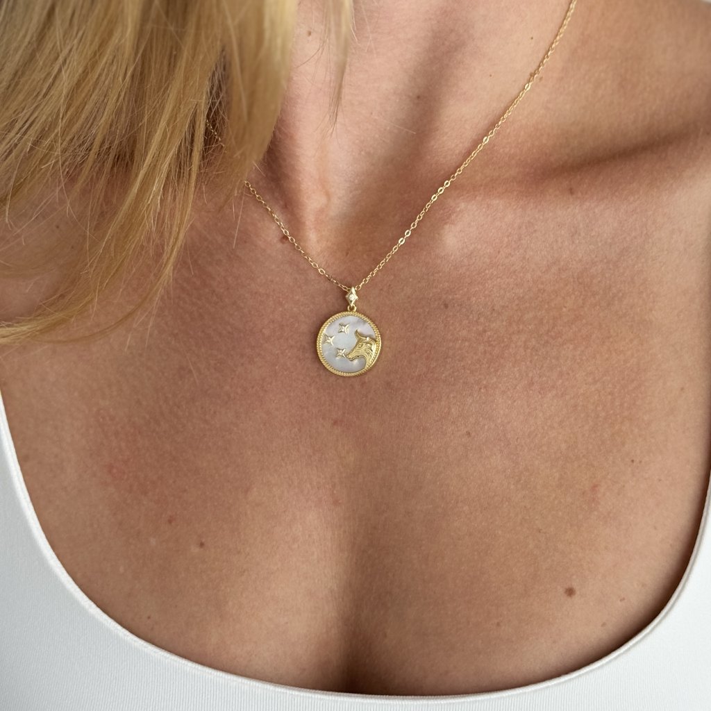 Srebrny zegarek wisiorek z łańcuszkiem MOONLIGHT TAURUS to idealny prezent dla każdego urodzonego pod znakiem Byka. Ten klejnot łączy w sobie stabilność i piękno tego ziemskiego znaku. Pozłacany okrągły zegarek wisiorek o średnicy 18 mm ozdobiony jest wizerunkiem Taurusa na białym tle, które przywołuje blask księżycowego nieba.