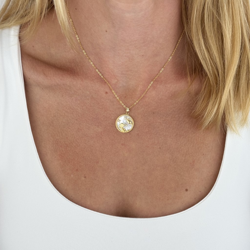 Srebrny łańcuszek wisiorek z MOONLIGHT CANCER to idealny prezent dla każdego, kto urodził się pod znakiem Kraba. Ten klejnot łączy w sobie delikatność i piękno tego wodnego znaku. Pozłacany okrągły wisiorek o średnicy 18 mm jest ozdobiony wizerunkiem Raka na białym tle, który przywołuje blask księżycowego nieba.