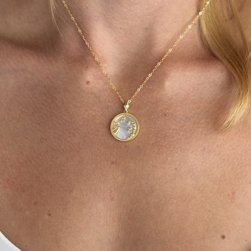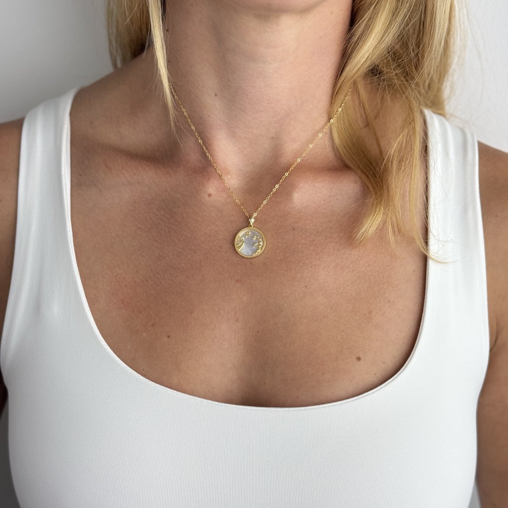 Srebrny zegarek wisiorek z łańcuszkiem MOONLIGHT SCORPIO to idealny prezent dla każdego urodzonego pod znakiem Skorpiona. Ten klejnot łączy w sobie intensywność i piękno tego wodnego znaku. Pozłacany okrągły wisiorek o średnicy 18 mm jest ozdobiony wizerunkiem Skorpiona na białym tle, które przywołuje blask księżycowego nieba.