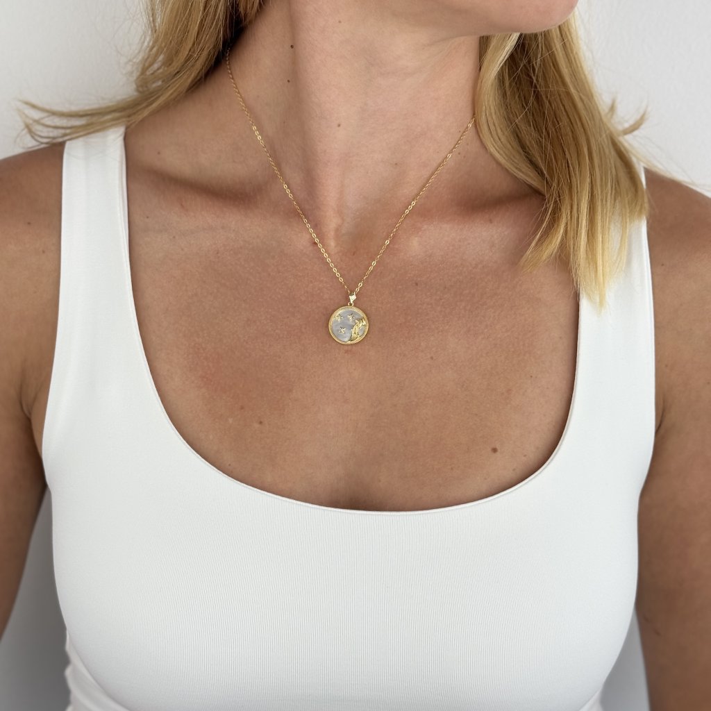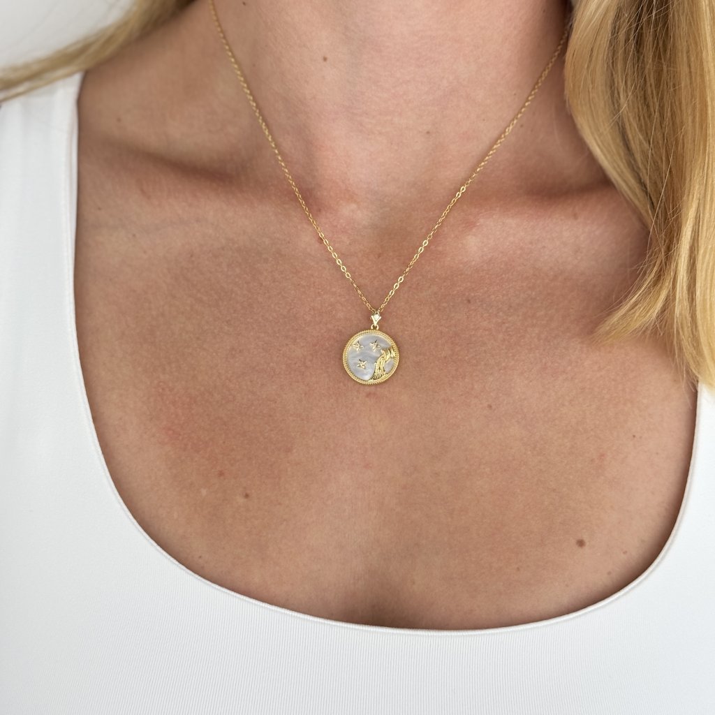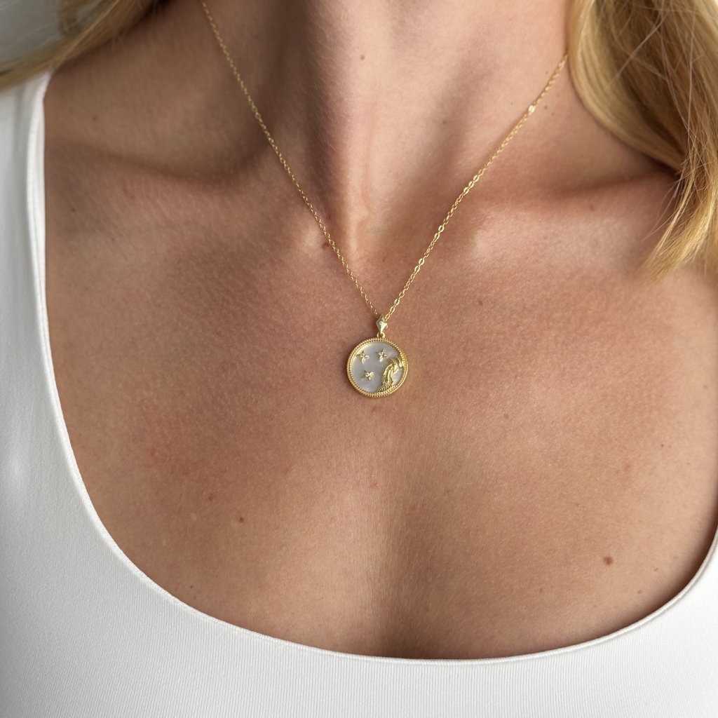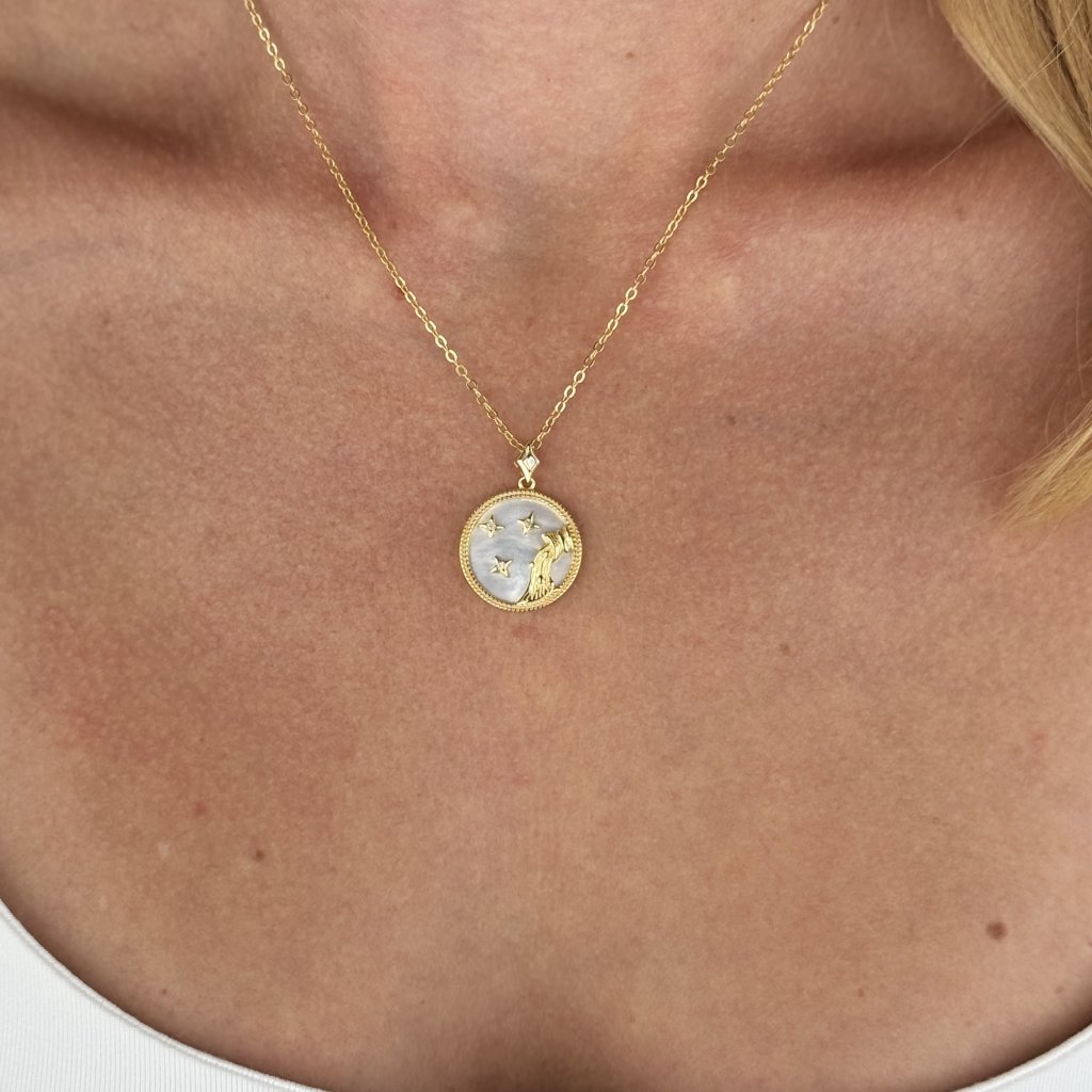 Srebrny zegarek wisiorek z łańcuszkiem MOONLIGHT AQUARIUS to idealny prezent dla każdego urodzonego pod znakiem Wodnika. Ten klejnot łączy w sobie wyjątkowość i piękno tego znaku powietrza. Pozłacany okrągły wisiorek o średnicy 18 mm jest ozdobiony wizerunkiem Wodnika na białym tle, które przywołuje blask księżycowego nieba.