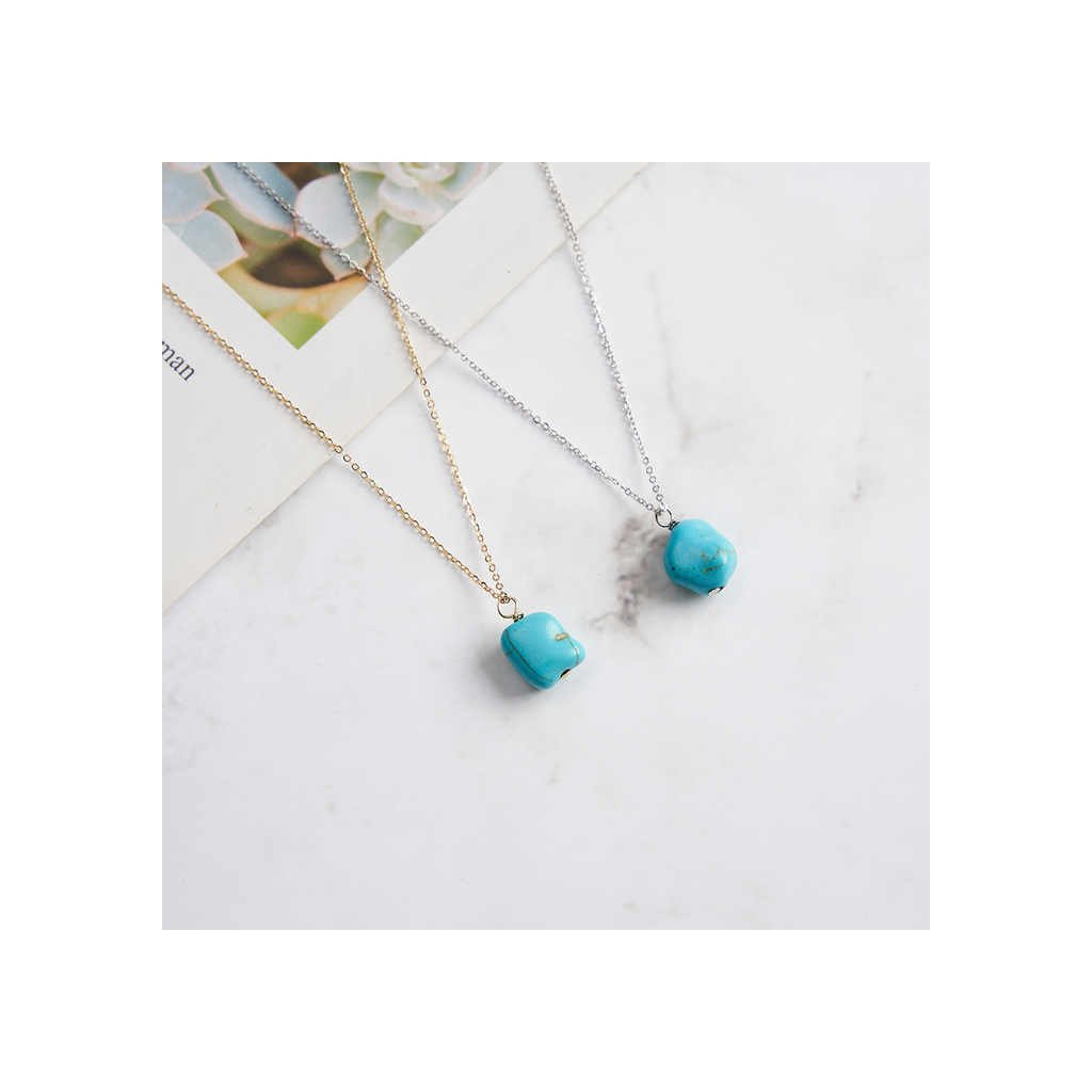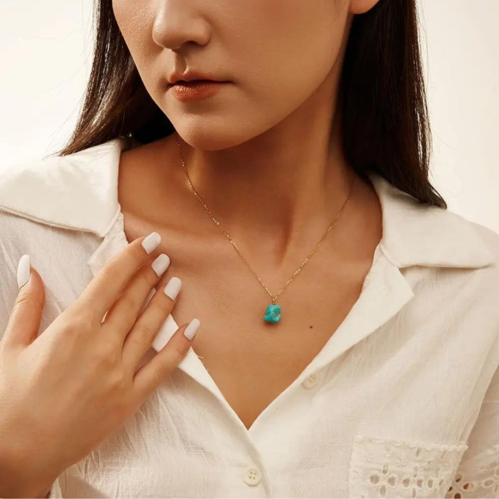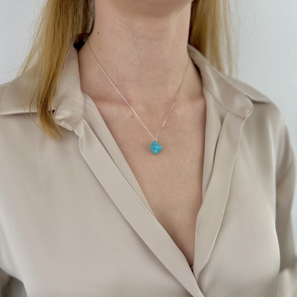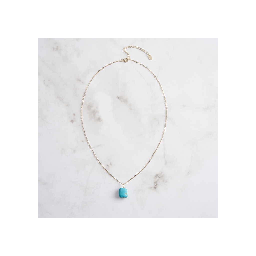 Sercem tego naszyjnika jest wisiorek z turkusowym kamieniem o wymiarach 9 x 12 mm. Dzięki regulowanej długości 40 + 5 cm dopasowuje się do każdego stylu i dekoltu.