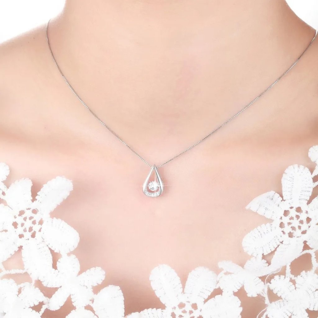 Srebrny łańcuszek z wisiorkiem ŁZY SZCZĘŚCIA opowiada historię radości i życiowego spełnienia. Wisiorek wykonany jest z wysokiej jakości srebra próby 925/1000 z rodowaną obróbką powierzchni, która zapewnia długotrwały połysk. Delikatny kształt łezki ozdobiony błyszczącymi cyrkoniami symbolizuje czystość szczęścia i pozytywną energię życiową.