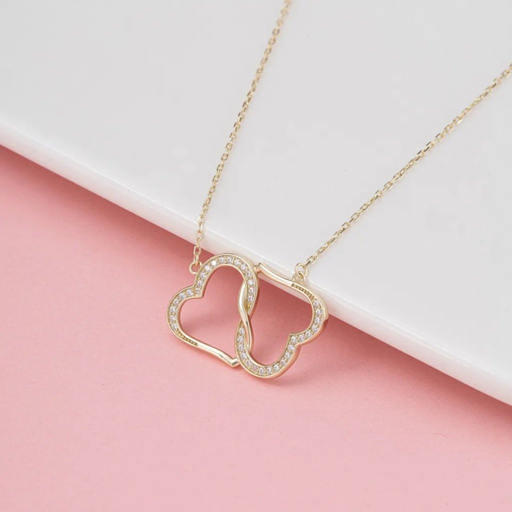 Regulowana długość łańcuszka 41 + 5 cm pozwala na noszenie klejnotu w różnych długościach w zależności od okazji. Splecione serca symbolizują nierozerwalną więź dwóch dusz, a sześcienne cyrkonie reprezentują radosne chwile wspólnej podróży.