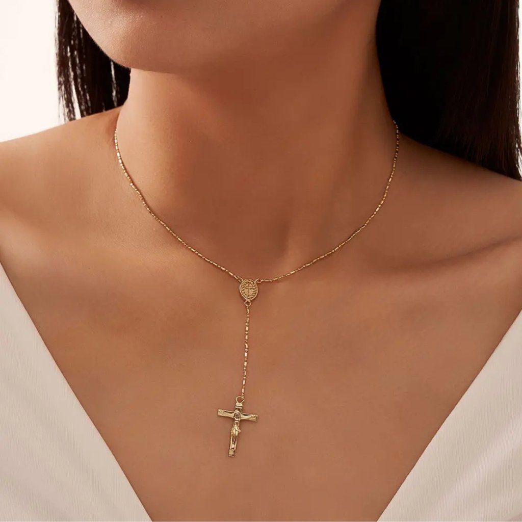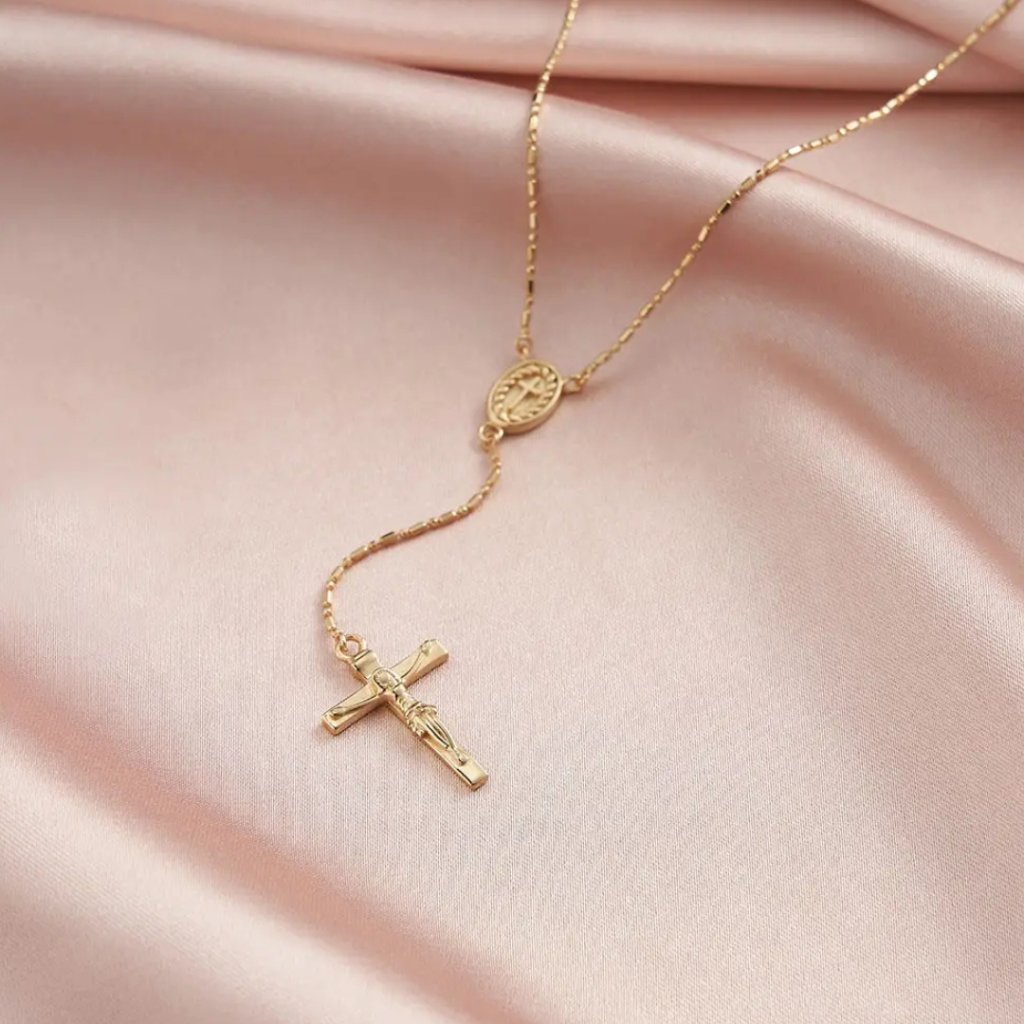 Ten wyjątkowy, pozłacany srebrny łańcuszek CHRISTO łączy w sobie elegancję z głęboką duchową symboliką. Biżuteria składa się z dwóch łańcuszków połączonych subtelnym krzyżykiem, a główny wisiorek przedstawia Jezusa na krzyżu. Łańcuszek wykonany jest z wysokiej jakości srebra próby 925/1000 i pokryty luksusową 14-karatową pozłacaną powłoką, która nadaje mu szlachetny wygląd.