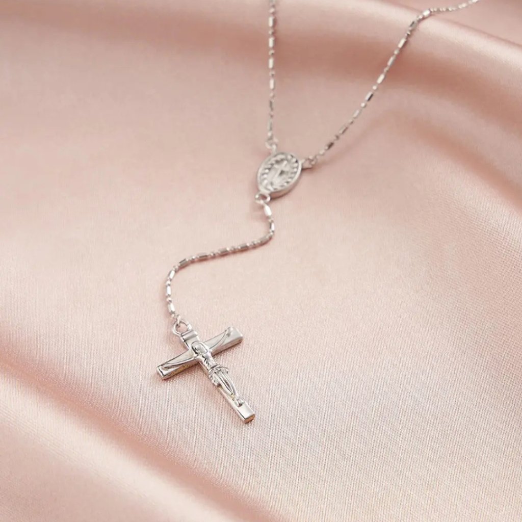 Ten elegancki srebrny łańcuszek CHRISTO to piękny dodatek, który łączy styl i jakość. Biżuteria składa się z dwóch delikatnych łańcuszków, które są połączone subtelnym krzyżykiem, a główny wisiorek jest precyzyjnie wykonany z wysokiej jakości srebra próby 925/1000. Powłoka z rodu zapewnia długotrwały połysk i ochronę przed utlenianiem.