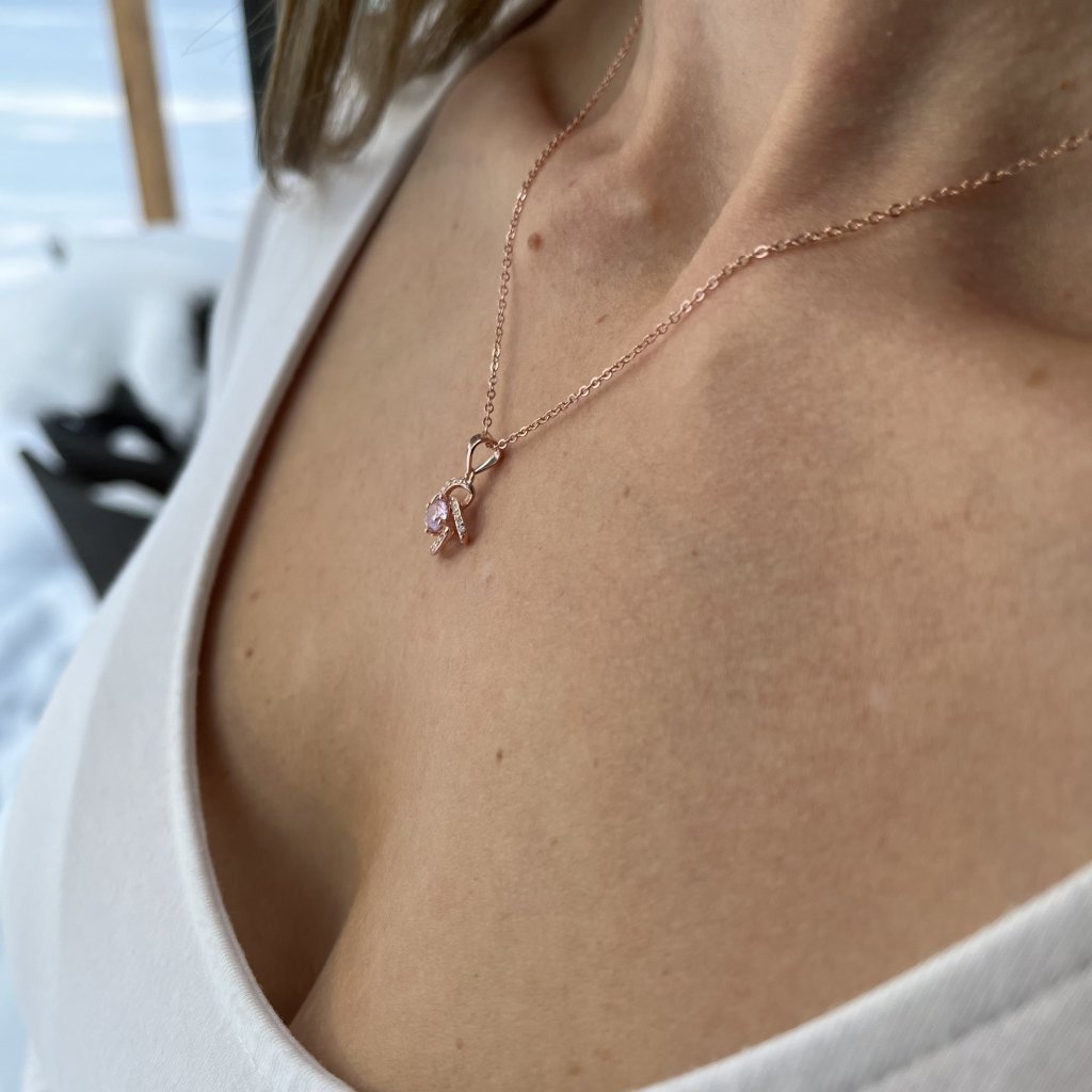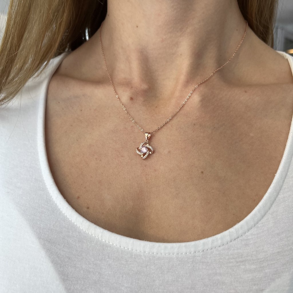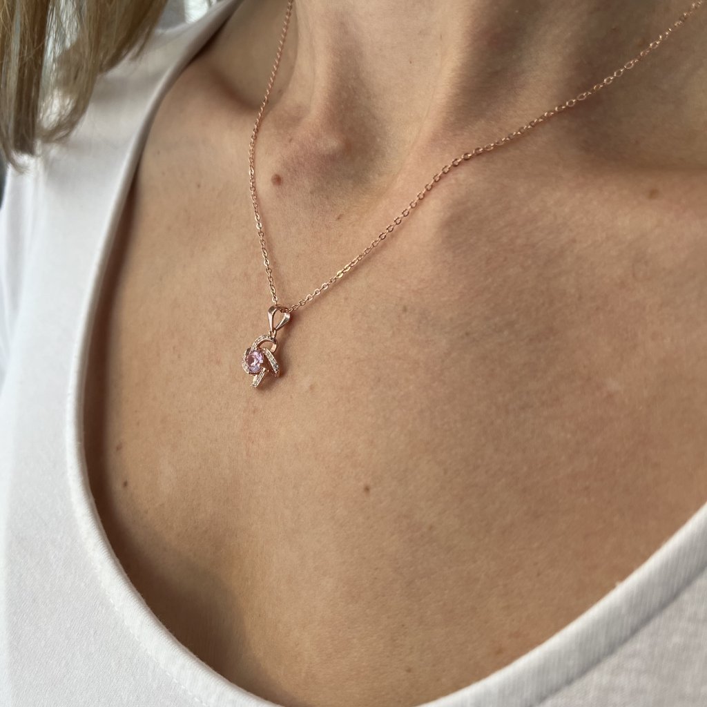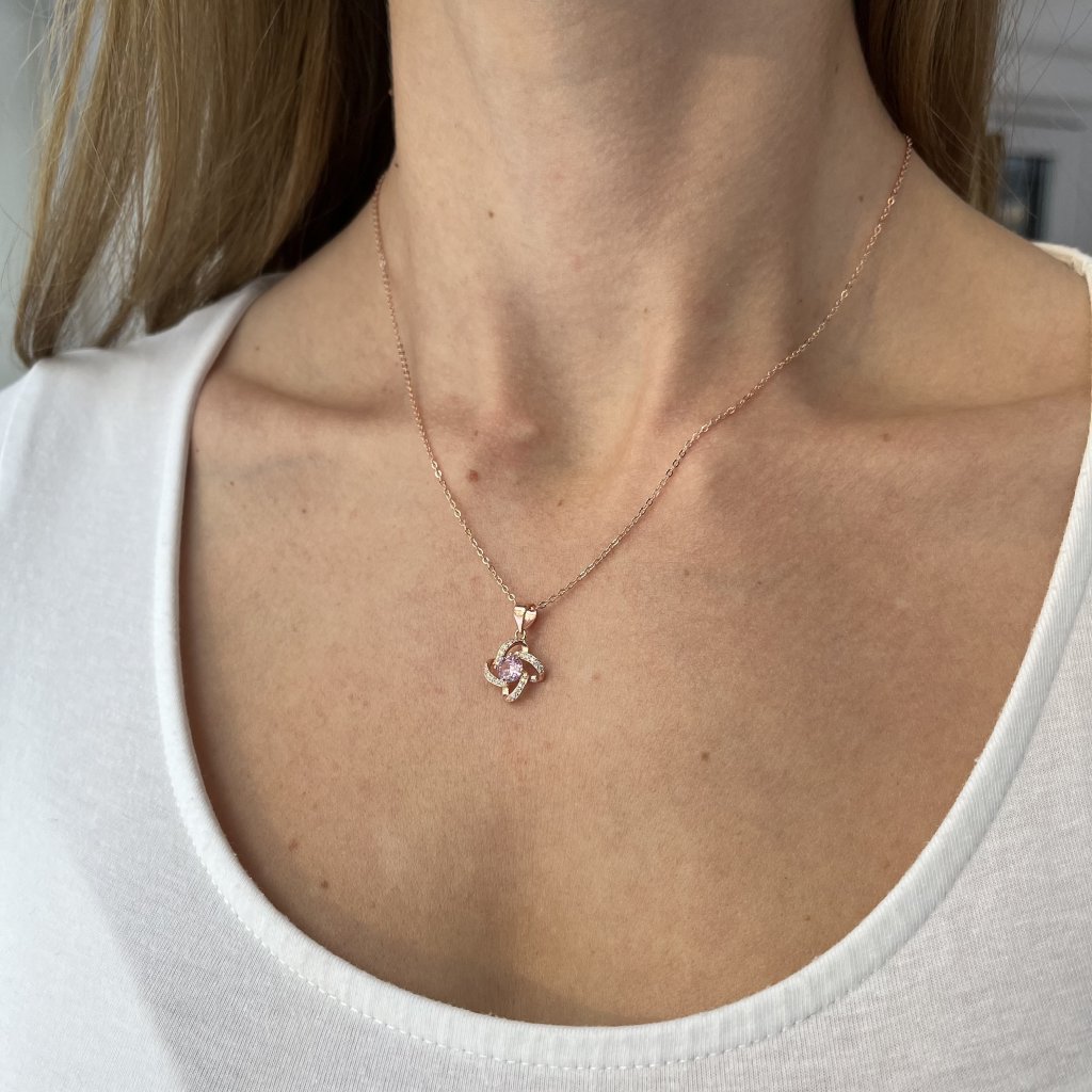 Ten klejnot jest wykonany ze srebra o próbie Ag925/1000, a jego powierzchnia jest pokryta techniką złocenia ROSE, która nadaje mu charakterystyczny różowy akcent. Środek naszyjnika zdobi piękna różowa cyrkonia o średnicy 5 mm otoczona czystym srebrem, tworząc piękny kontrast. Całkowity rozmiar elementu wynosi 12 x 12 mm, co jest idealnym rozmiarem do noszenia na co dzień i na specjalne okazje.