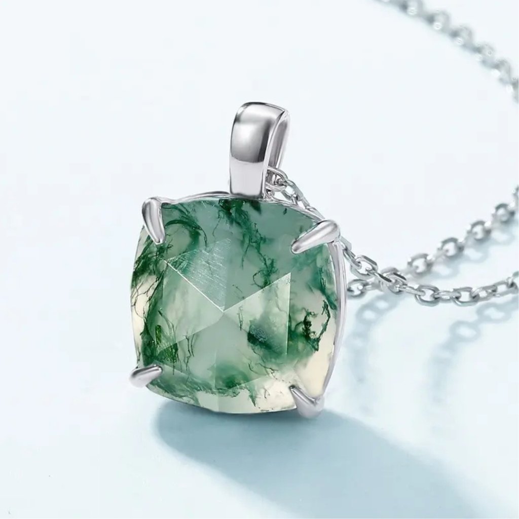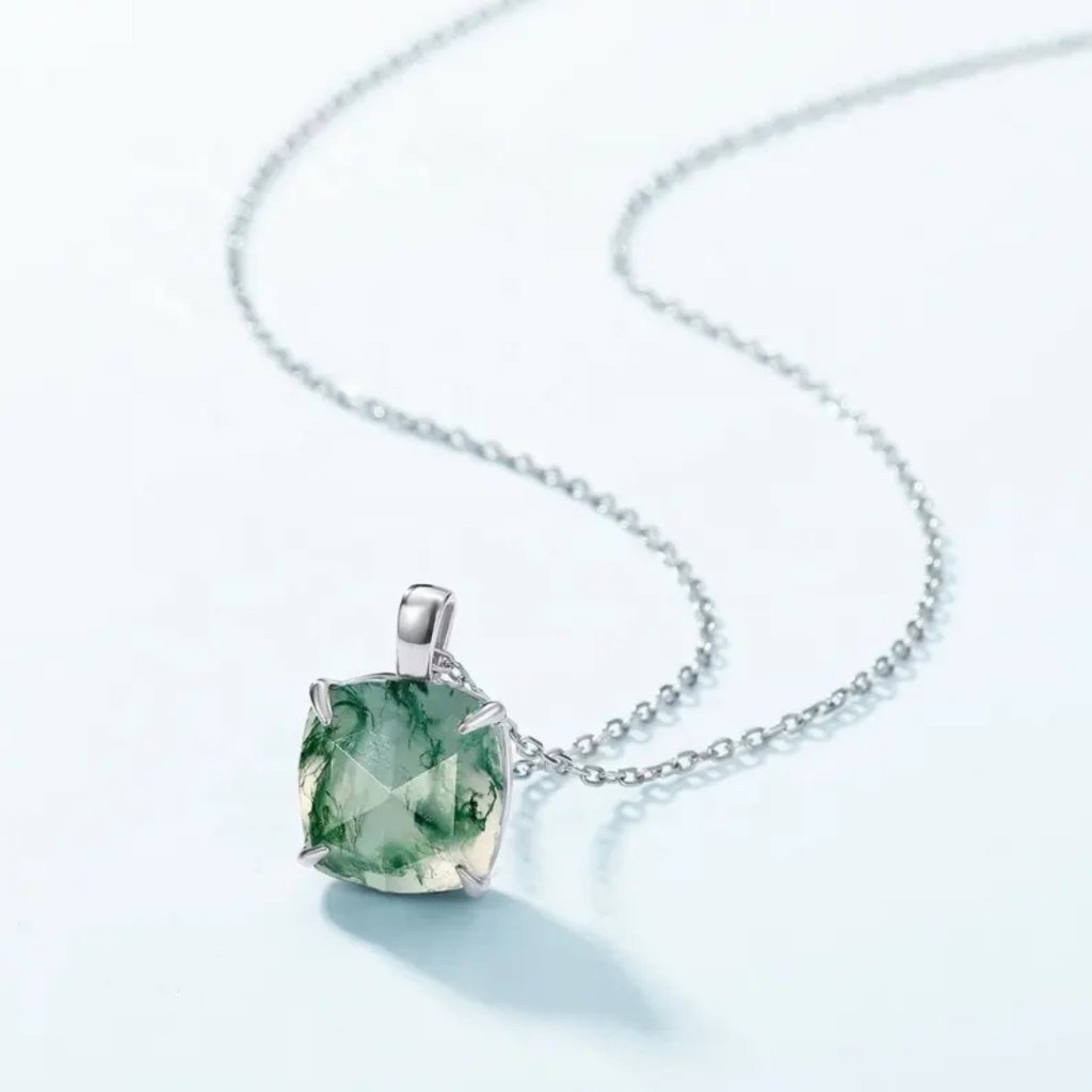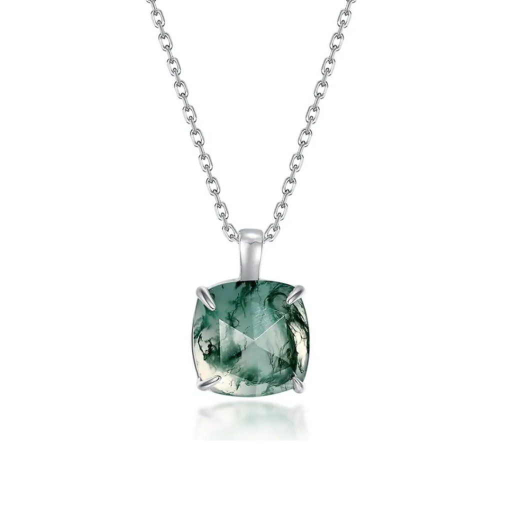 Odkryj urok natury dzięki naszej srebrnej zawieszce ALIGN z agatem mszystym. Ta wyjątkowa biżuteria łączy czystość srebra próby 925/1000 z mistycznym pięknem agatu mszystego, który znany jest ze swoich uspokajających właściwości i połączenia z energią ziemi.