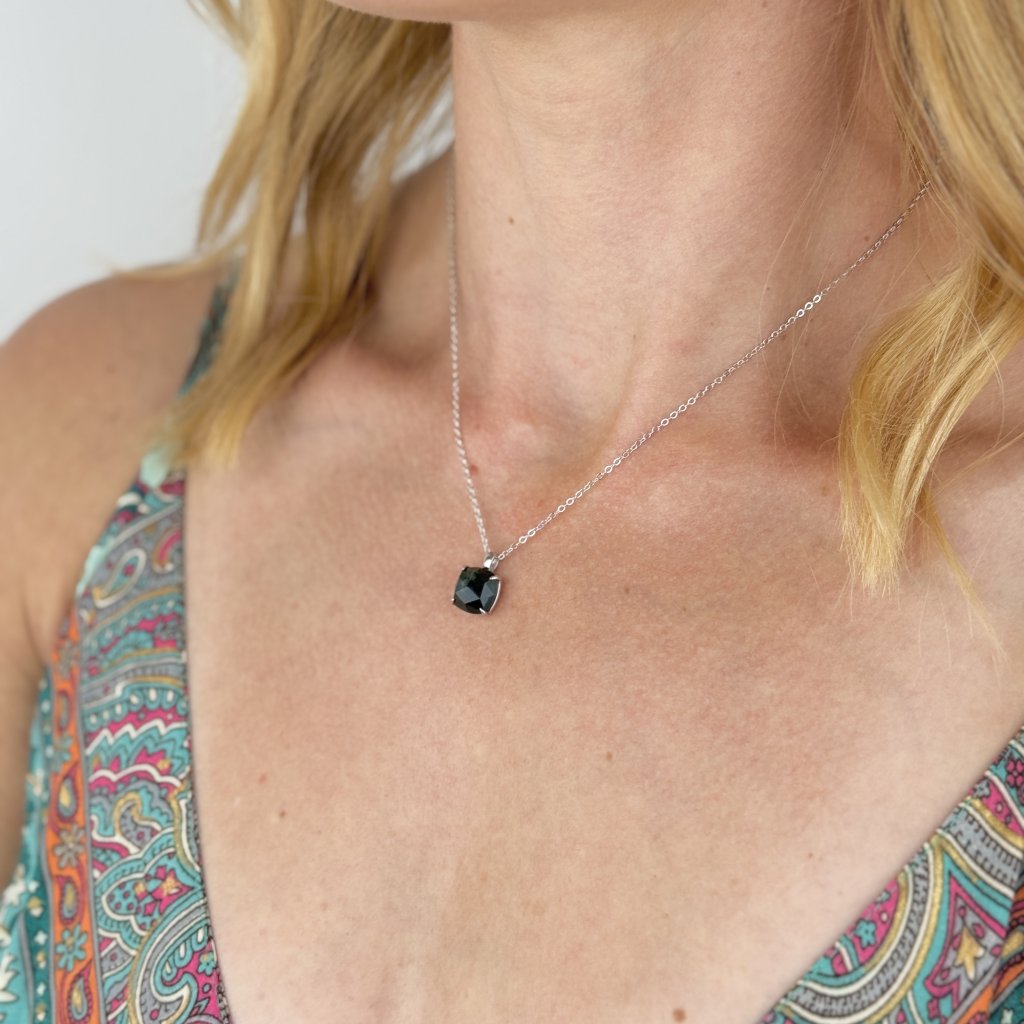 Wisiorek w kształcie koła (10 × 10 mm) oddaje fascynujące zielone odcienie kamienia, przypominające tajemniczy leśny mech. Każdy kamień jest unikatowy, co czyni Twoją biżuterię absolutnie niepowtarzalną. Rodowana powłoka zapewnia długotrwały blask i ochronę przed ciemnieniem.