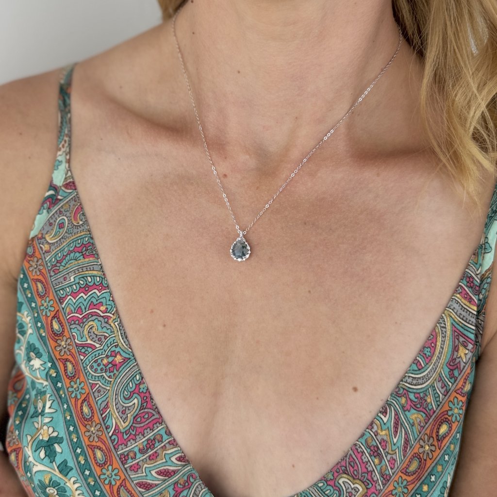 11809 Srebrny wisiorek z łańcuszkiem GROUNDING z agatem mszystym Ag925/1000; ≤2,81 g
