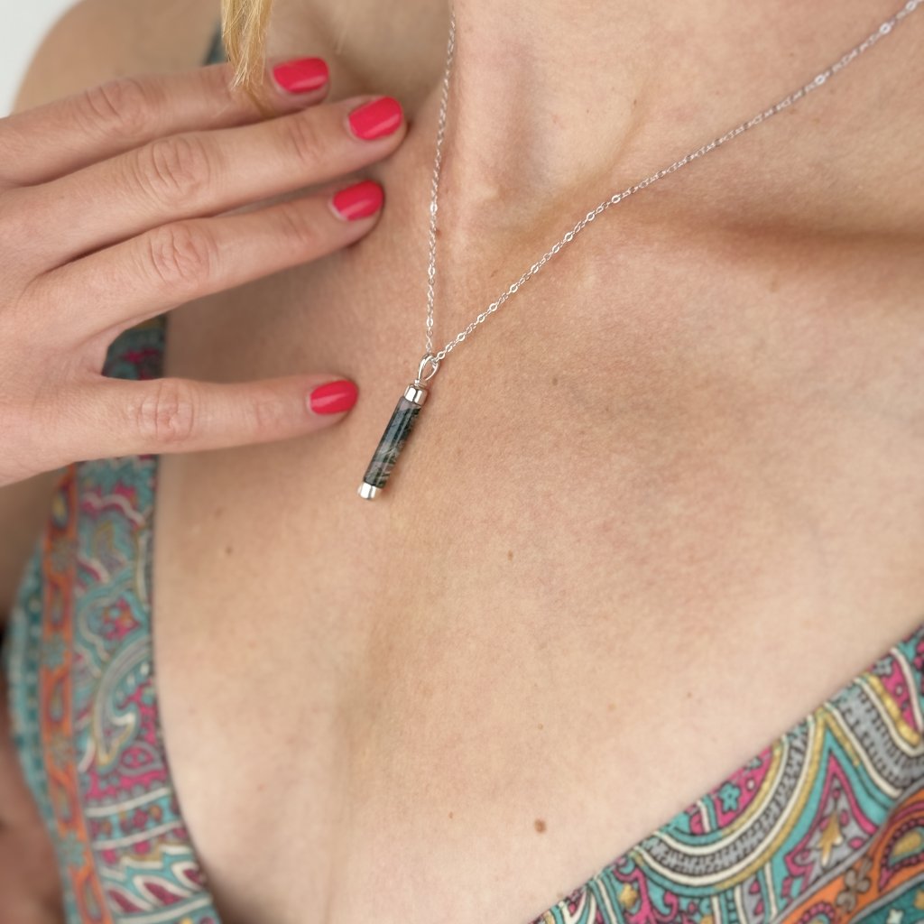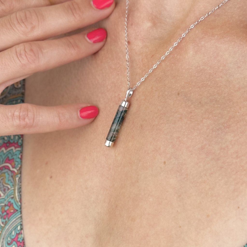 Wisiorek TRIBE z agatem mszystym reprezentuje silne połączenie z naturą i korzeniami przodków. Nazwa TRIBE (plemię) odnosi się do głębokiej więzi ze społecznością i tradycjami, co znajduje odzwierciedlenie w unikalnym designie tego amuletu.